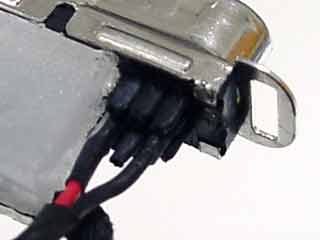 『製品』ですので裏側は樹脂で固められています。先ずはそれを削らなくてはイケません。柔らかいのでカッターで出来ますが、あー、めんど。そして13pin 'Soft Power' と、回路図のGNDを11pin '28V Return' に配線します。ピンの間隔は非常に狭く、短絡の危険があります。ここでは熱収縮チューブを被せました。ピンを引き抜いてから作業するとらくちんです。