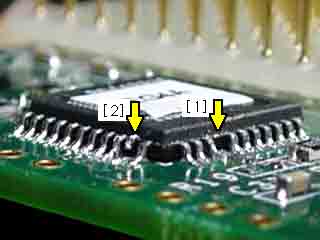 2032VE脇の配線をカットしても良いのは[0]と[3]でした。[1]と[2]は2032VEチップの下に配線が延びているので、2032VEの端子を浮かせるか若しくは切るしかないでしょう。私は浮かせようと思っていたのですが、[1]のほうが折れちゃいました。後戻りはしない覚悟なので、まぁイイんですけど。って、それを考えると端子を4つともカッターでザクザク切ったほうが簡単確実だったやも。