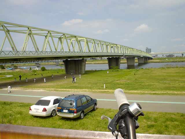 鉄橋が3本。総武線の緩行と快速と....あと何だろう?特急かしらん?