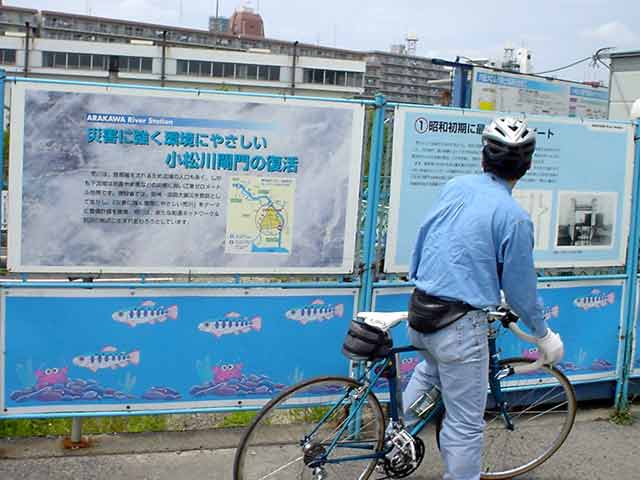昔にも小松川閘門は在ったらしいです。それが水運の需要が減ったために廃止されたんだとか。がしかし、時代は変わるものです。阪神淡路の大地震の教訓で水路の活用が見直されたとのこと。んー、そーゆーコトのためにこの閘門が大活躍しないことを祈りマス....。
