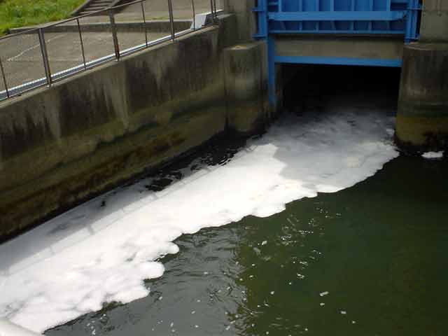 水面は泡立ってます。