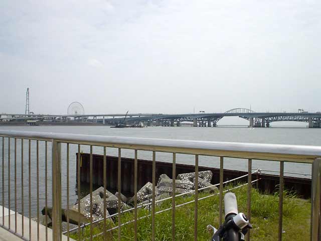 ▼1208時、新砂船着場/首都高湾岸線荒川河口橋/JR京葉線鉄橋