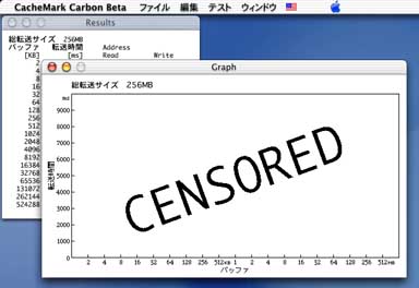 勝手に色付きカーソルがくるくる廻るので、「真の」マルチタスクを実感出来ます。おかげで正確な測定は出来ませんね。CacheMarkもCarbon版は開発中止か?