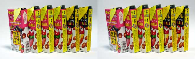 なんでまたメールなんかでそんなこと訊いてくるのよ。掲示板に書いた方が良かったんでない?それとも何かワケありとか? んぢゃ仕方が無いので(?)私の場合をこっそり教えませう。某RL誌を熟読した後、店頭でパッケージを手に取ってぢっくりと観察。バリとか印刷のズレをね。そうすればかなりの確率で入手出来ますよ。って、現在はドーだか知りませんけど。ちなみに『金』は一度も拝んだことがありません。手持ちの『銀』は6個です。折角(?)ですので立体写真(平行法)です。小さくて見づらいかな?