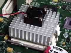 先ずは純正6GBのHDDに必要そうなデータを退避。十分に筐体内が暖まった頃を見計らい、OS9.1のCDで起動........しません。エラー発生だす。何度ヤっても同じタイミングで起動途中にシステムエラー。この時点でのCPUの冷却は純正ヒートシンクのみ。ですので、そのヒートシンクに4cm角のファン(JPEG/5KB)を着けてみました。ホントは2.5cm角(JPEG/5KB)にしようと思ったんですけどね。温度にして8℃ほど差が出たもので。んで、ヤり直し。OS9.1をインストールして9.2.2に上げた後、OS X 10.1を。そして10.1.5へ........無事完了。