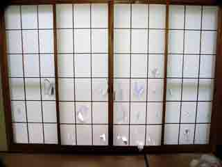 先日の身内の挙式の際には、我家に19名ほど寝泊まりしてましたねぇ。それも今は昔。甥っ子たちも帰っていきました。んー、静かですねー、んー........。ちなみに、居間の障子はこんな感じになりました。画像(JPEG/6KB)。