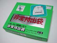 云わずと知れた非常持出し袋3,780円也。画像(JPEG/7KB)。リュックサック式。410x405x70mm。