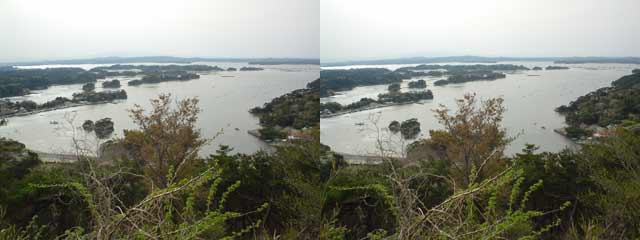 朝刊によりますれば、先月末の仙台の天気が「不明」から「煙霧」に訂正されたとか。ふーん。てなわけで、大高森のてっぺんから眺めたその日の松島の模様を、例によって例の如く(?)立体視でご紹介。画像(JPEG/20KB)。