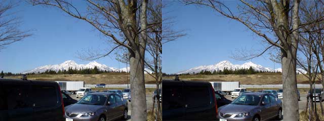 あれー? そんなに長いことヤってなかったでしたっけか? てなわけで、久しぶりんに立体視(平行法)の画像を掲載してみる。先ずは兼六園の霞ヶ池。あー、木の枝が動いちゃってるなー。もひとつ、帰路に寄った妙高SAでの眺め。クルマが1台入っちゃったよ。無念。