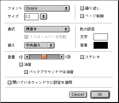 縦書き縦文字の設定ダイアログ。